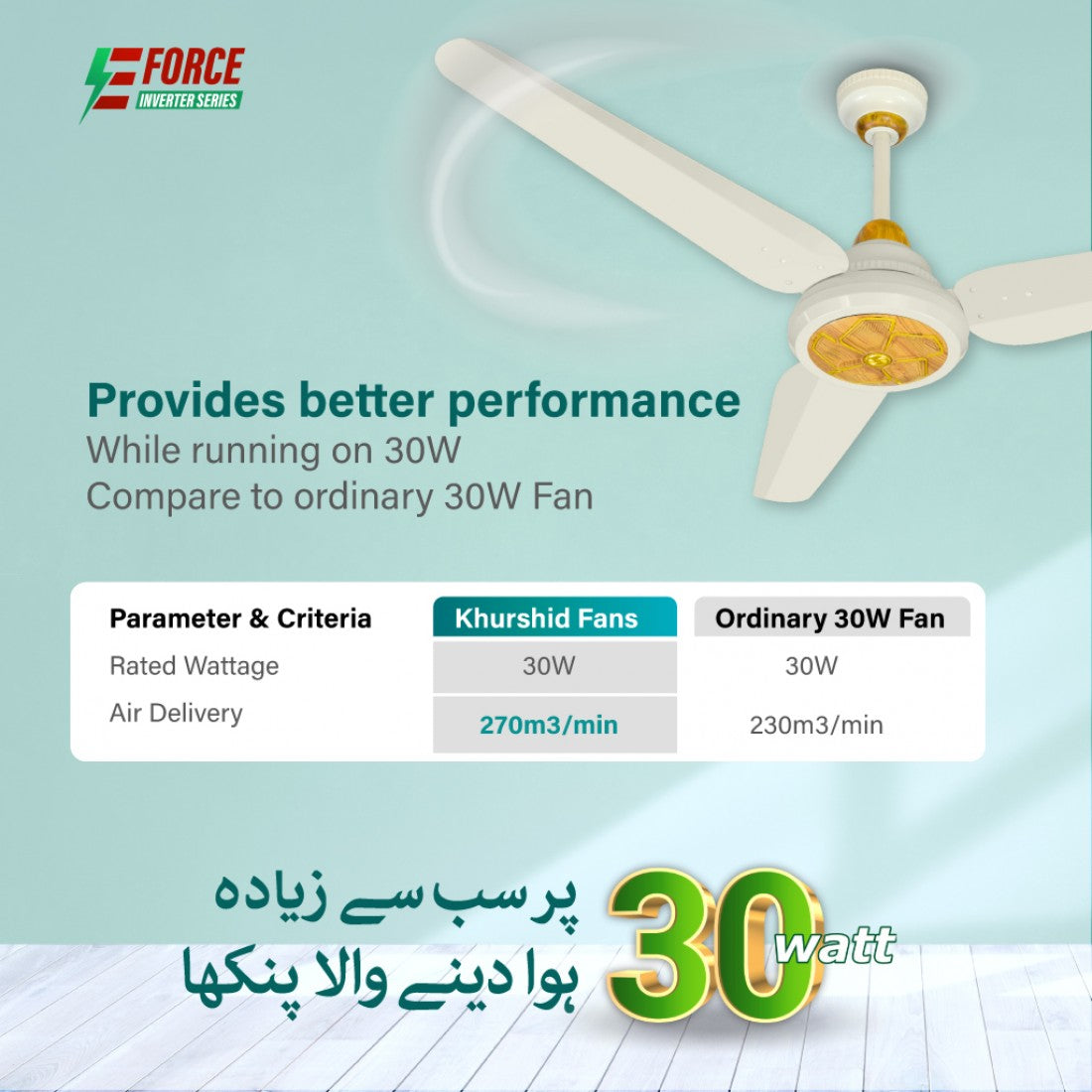Our E-force series delivers superior air delivery compared to conventional inverter fans—making it ideal for both residential and commercial use. It offers up to 70% electricity savings, helping you reduce your energy bill by as much as PKR 12,000 annually, ensuring a return on investment within one year.